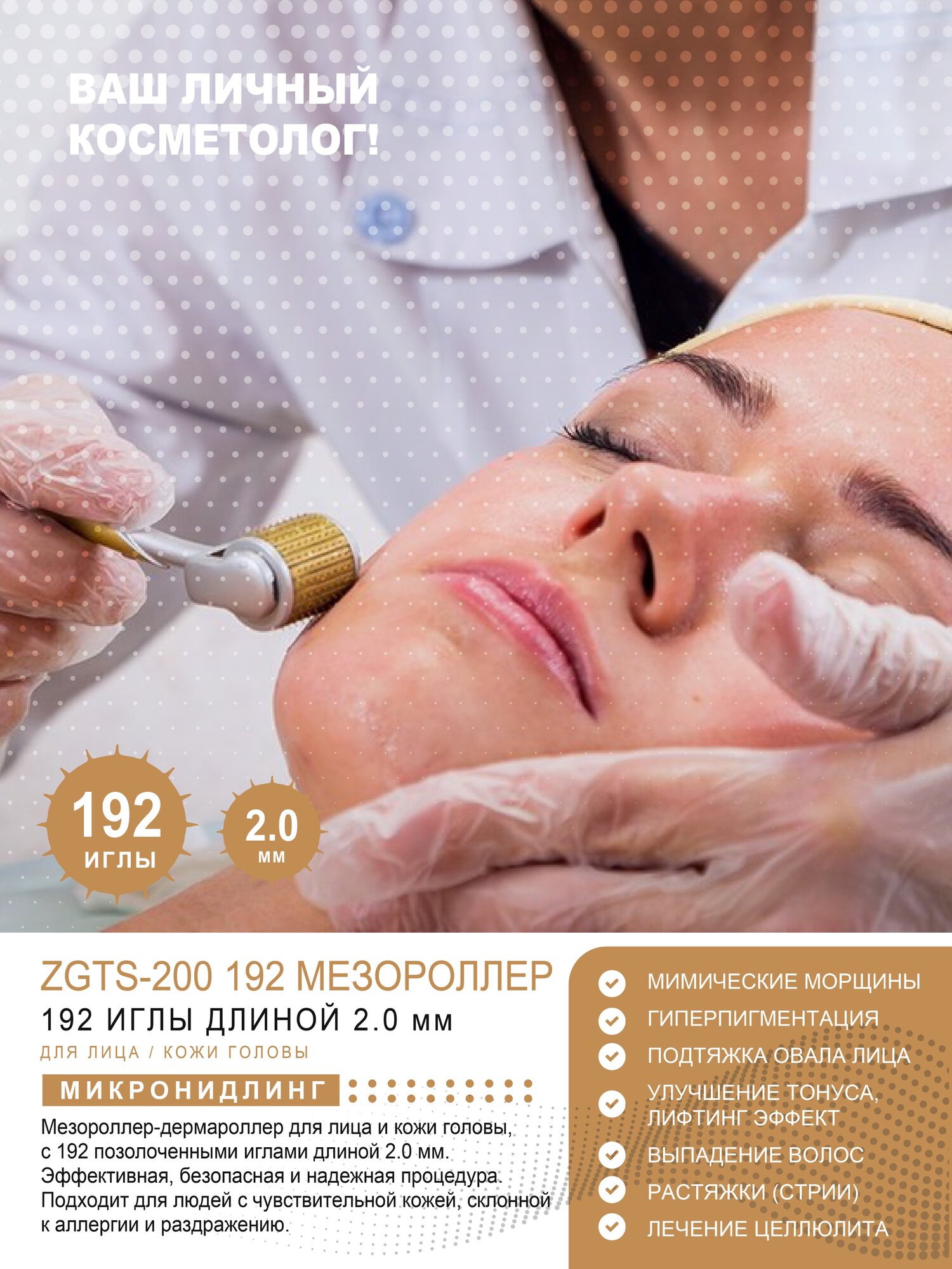 Купить ZGTS Мезороллер для тела и лица, для роста волос на 192 иглы из титановой стали, длиной 2.0 мм