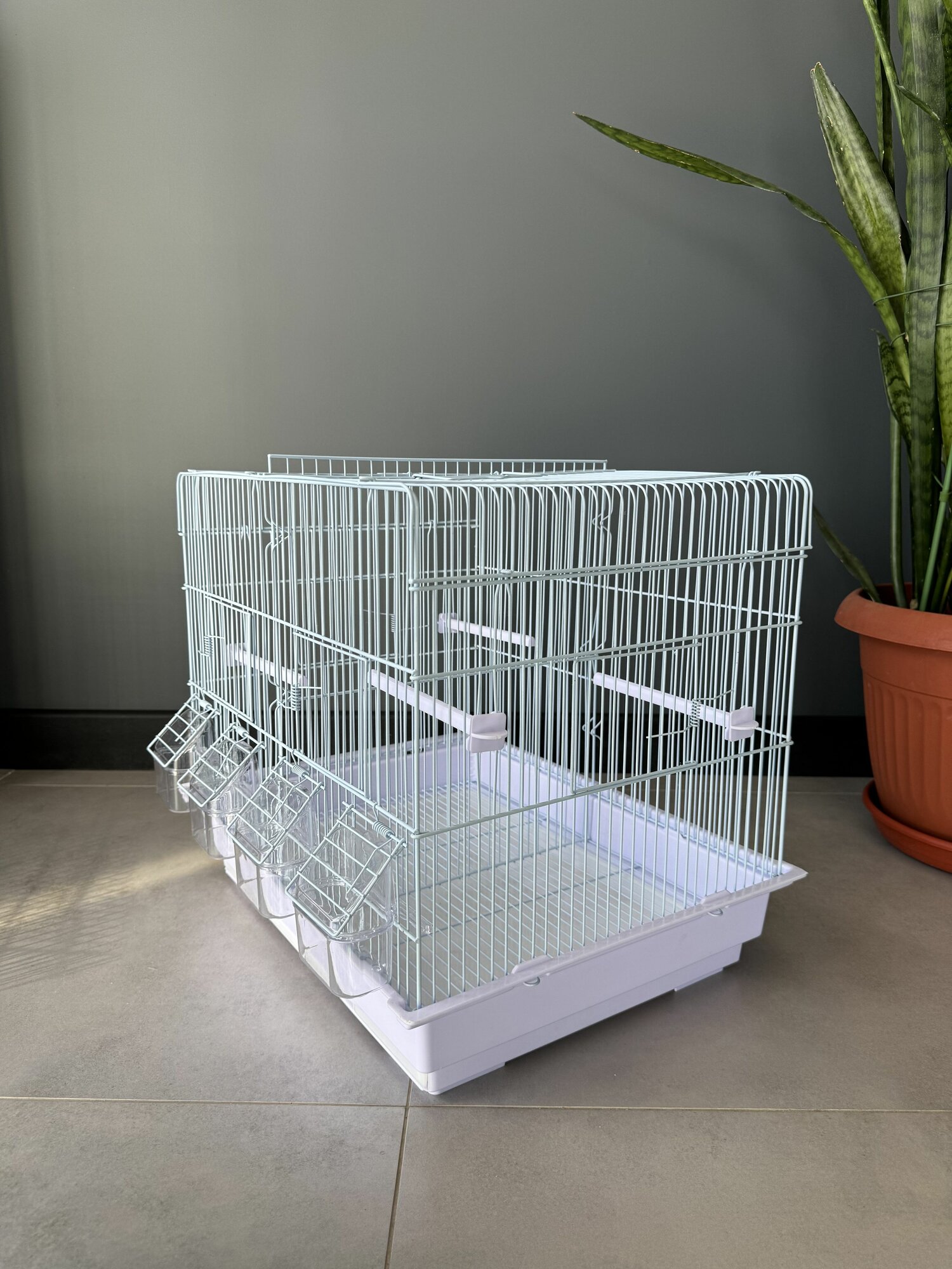 Клетка для птиц, 42х30х52 см., выдвижной поддон, фальшдно, поилки-кормушки, жердочки, качель, голубой