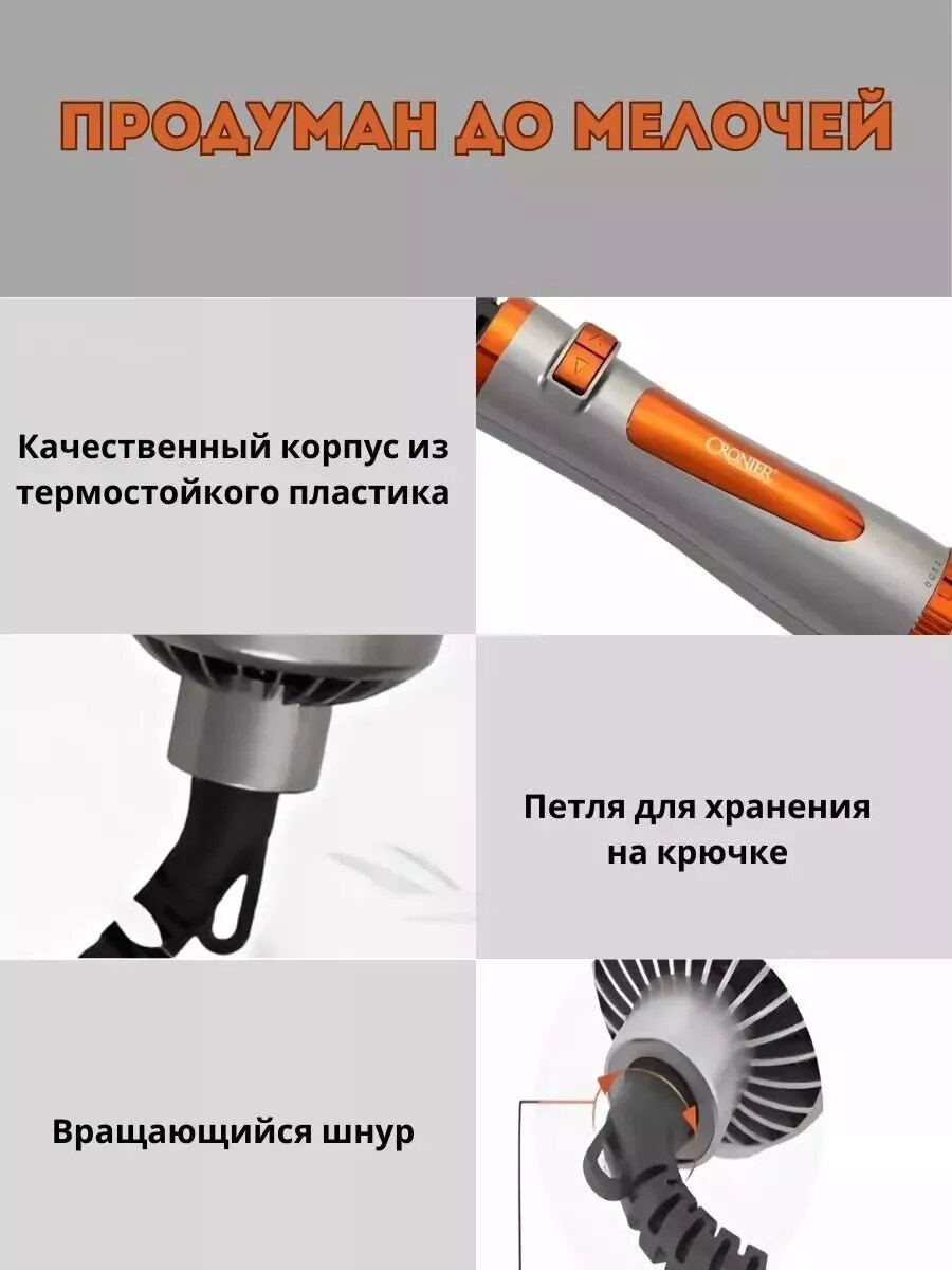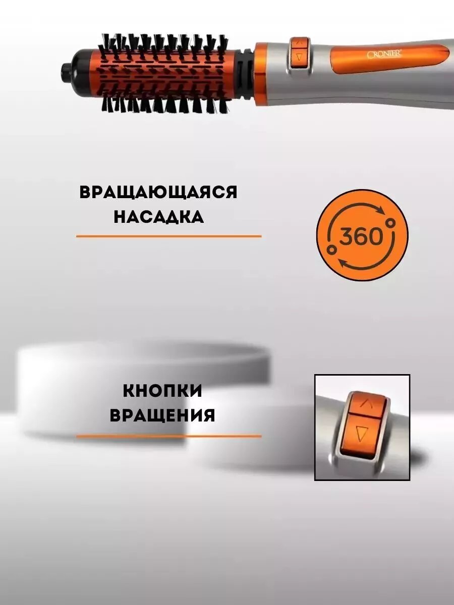 Фен - Щетка для волос CR-6855 профессиональная вращающаяся 1200Вт в комплекте 2 насадок интересное: