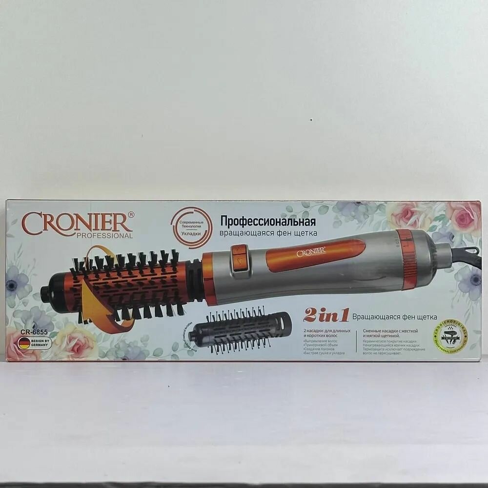 Купить Фен - Щетка для волос CR-6855 профессиональная вращающаяся 1200Вт в комплекте 2 насадок