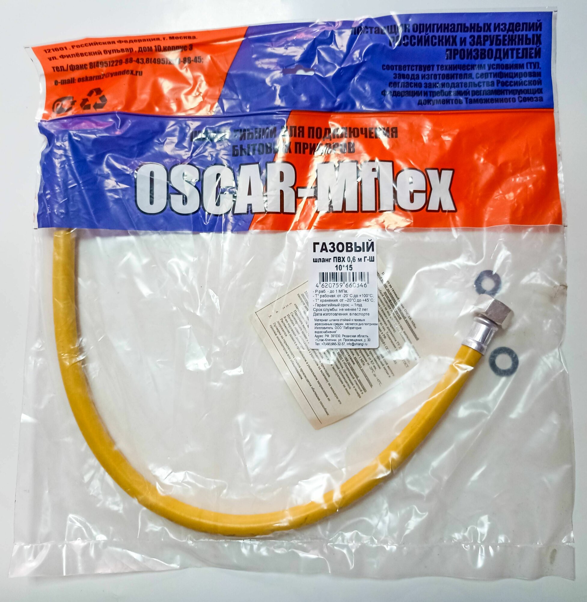Купить Шланг, подводка для газа ПВХ 1/2 0,6 м г/ш Oscar-M