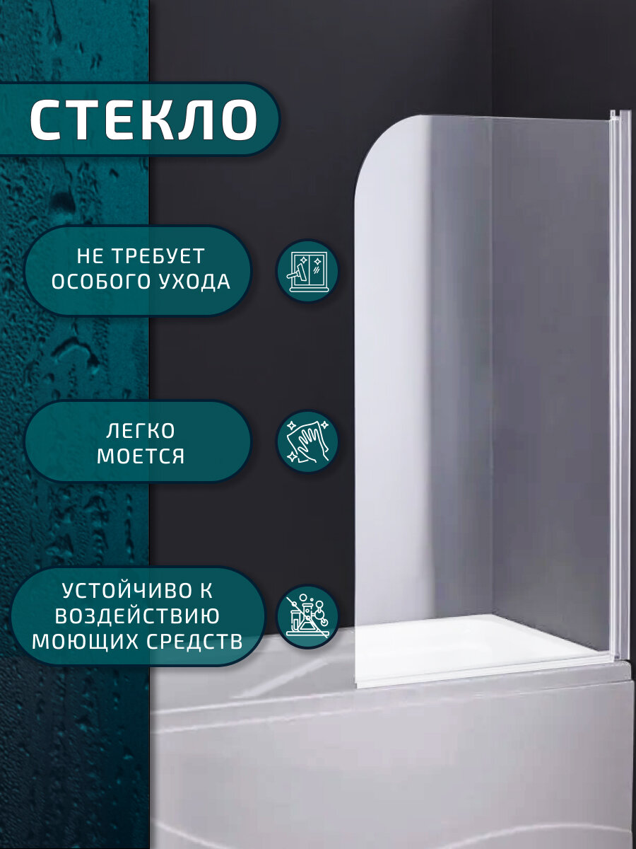 Шторка на ванну Aquanet Practic AE10-B-165H150U-CP, прозрачное стекло