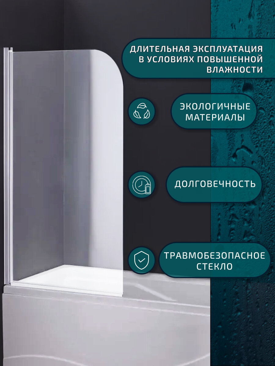 Шторка на ванну Wasserkraft Berkel 48P01-80W 80 см белый профиль
