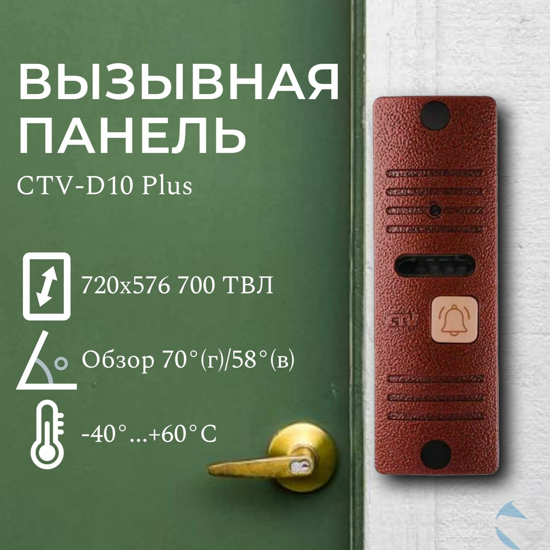 Вызывная панель видеодомофона CTV-D10 Plus (Коричневый). Видеокамера 700ТВЛ с ИК подсветкой, угол обзора 70 градусов -40...+60С