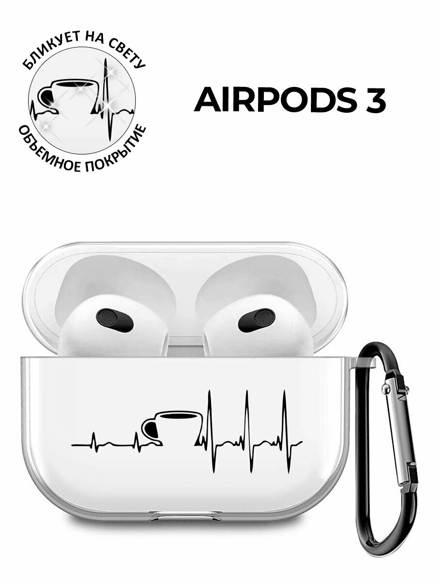 СохранитьСиликоновый прозрачный чехол для наушников Apple AirPods 3 / АирПодс 3 с 3D принтом "Coffee Cardiogram" интересное: