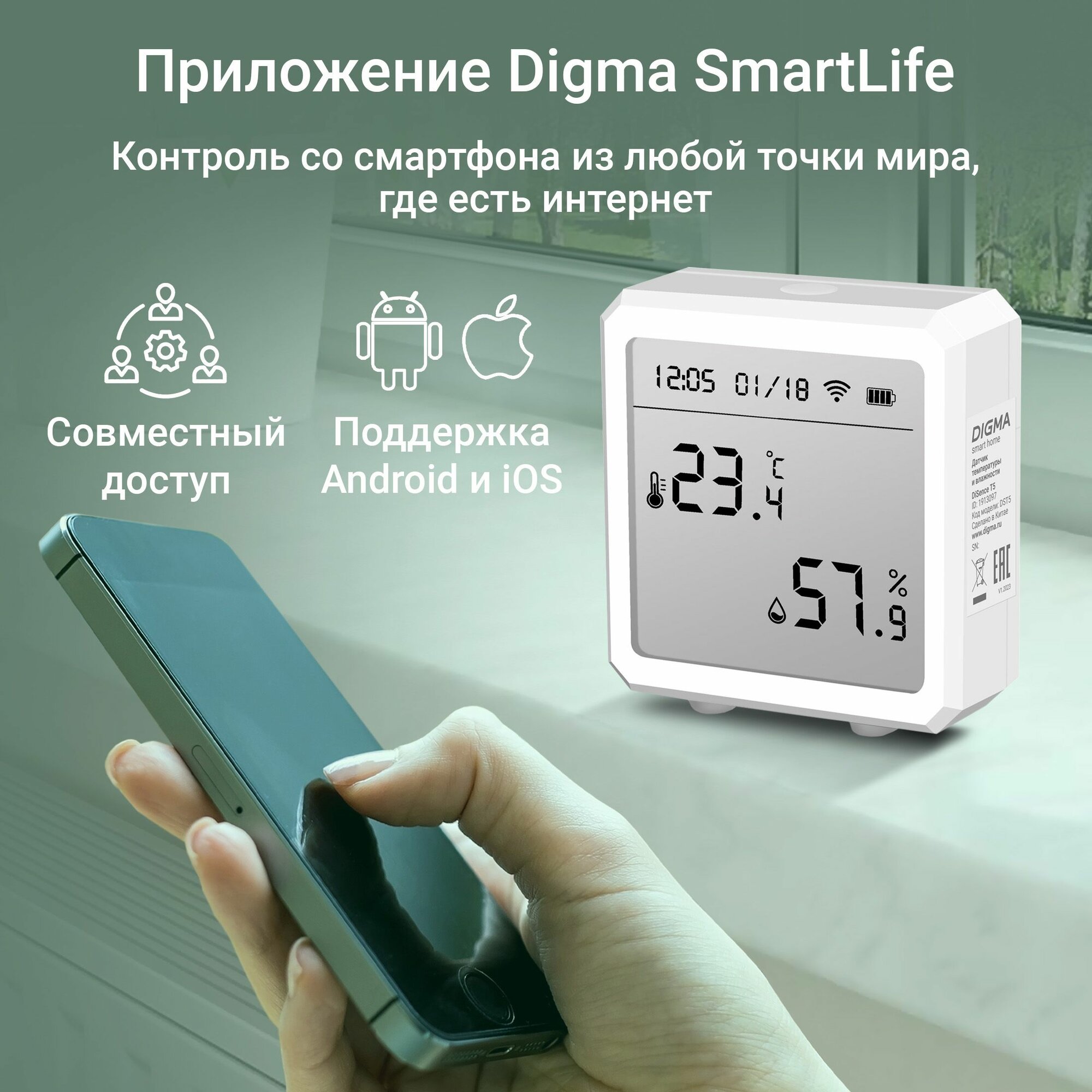 Датчик Digma темпер./влажн. DiSense T5 (DST5) белый DST5 интересное:
