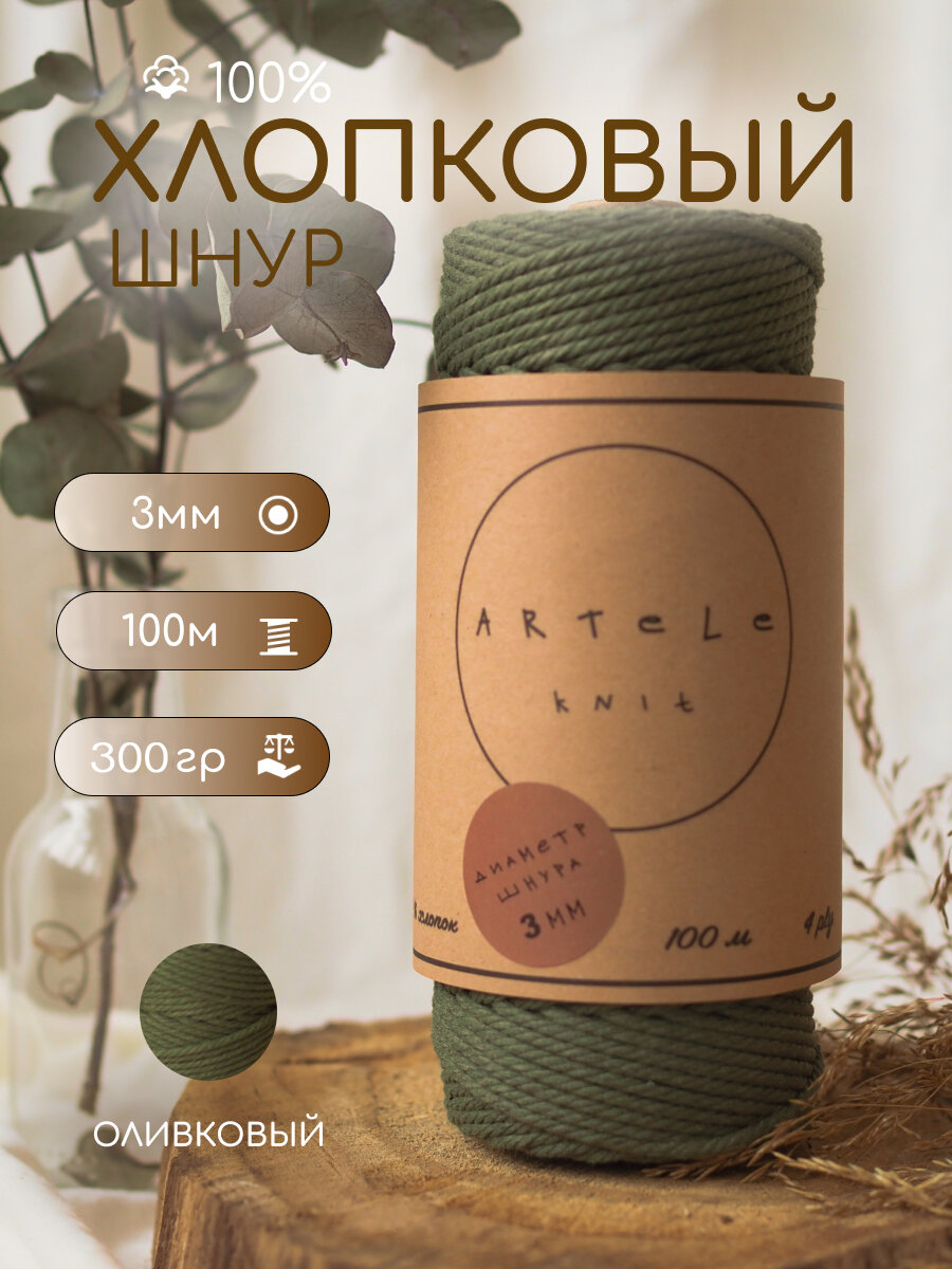 Хлопковый шнур для макраме и рукоделия Artele Knit, 3мм 100м