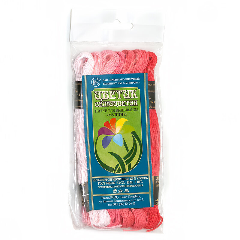 Купить Набор мулине "ПНК им. Кирова" "Цветик-Семицветик" 100% хлопок 7 цв. x 10 м №4 розовая гамма