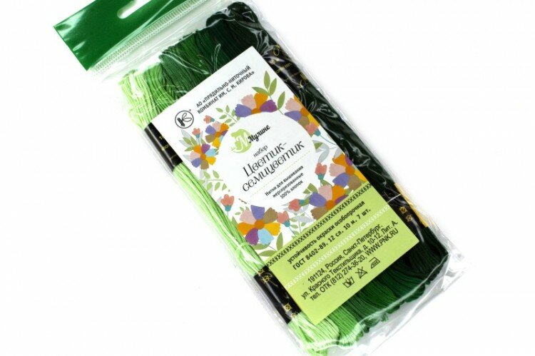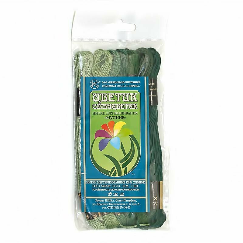 Набор мулине "ПНК им. Кирова" "Цветик-Семицветик" 100% хлопок 7 цв. x 10 м Набор №5 зеленая гамма