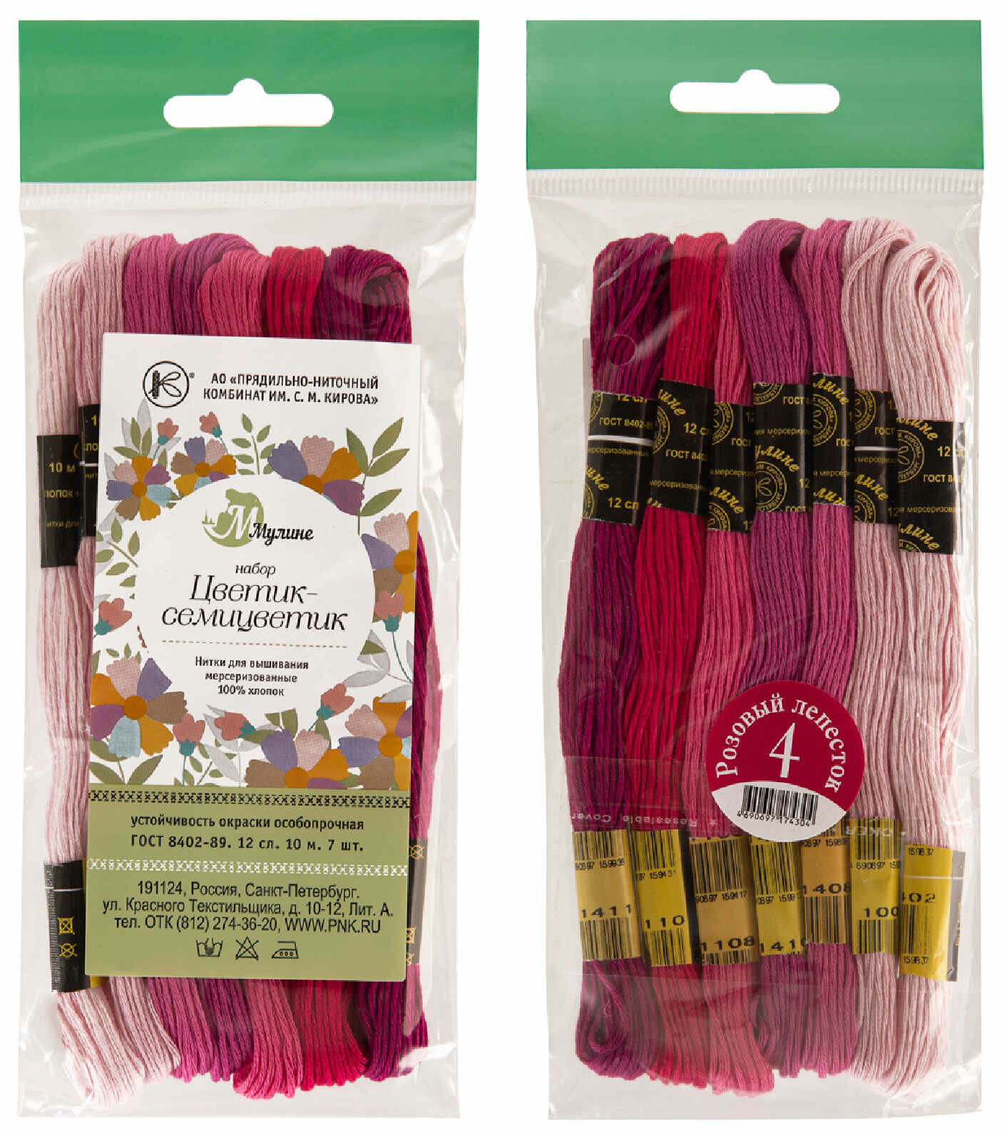 Купить Нитки мулине ПНК Кирова Цветик-семицветик 10 м, 7 мотков, №4-розовый лепесток (МУЛ.ПНК.набор.7.4/10)