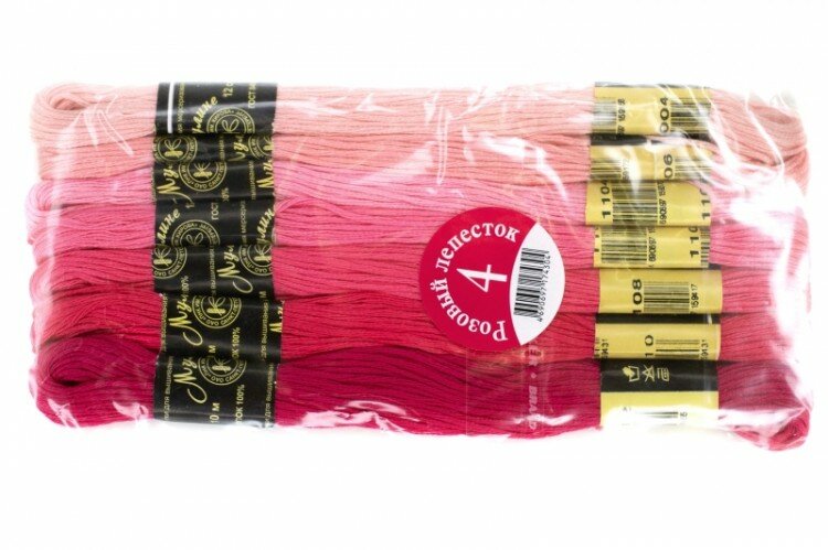 Набор ниток мулине "Цветик-семицветик", хлопчатобумажные, цвет: розовый лепесток №4, 10 м, 7 шт