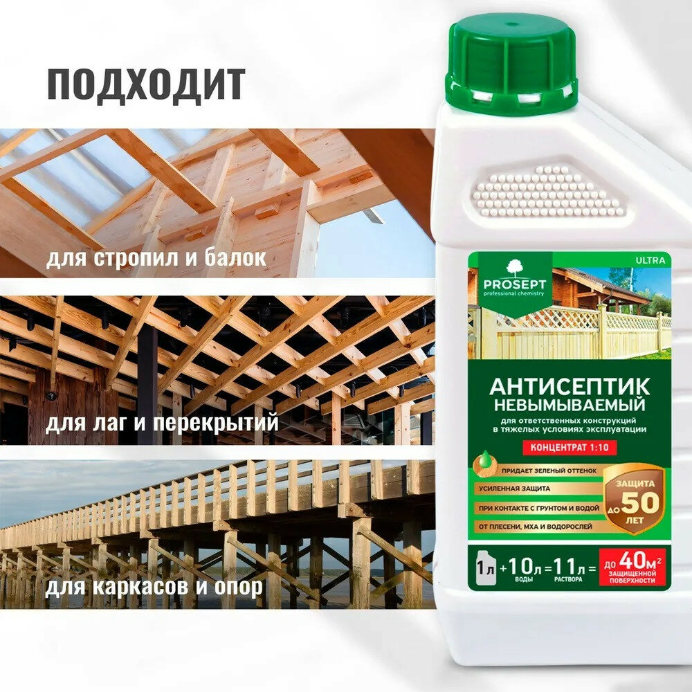 Prosept Ultra - невымываемый антисептик для ответственных конструкций. Концентрат 1:10. 1л 008-1