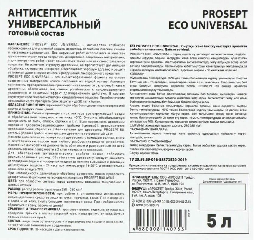 Антисептик prosept eco universal универс. для наружных и внутренних работ 5л