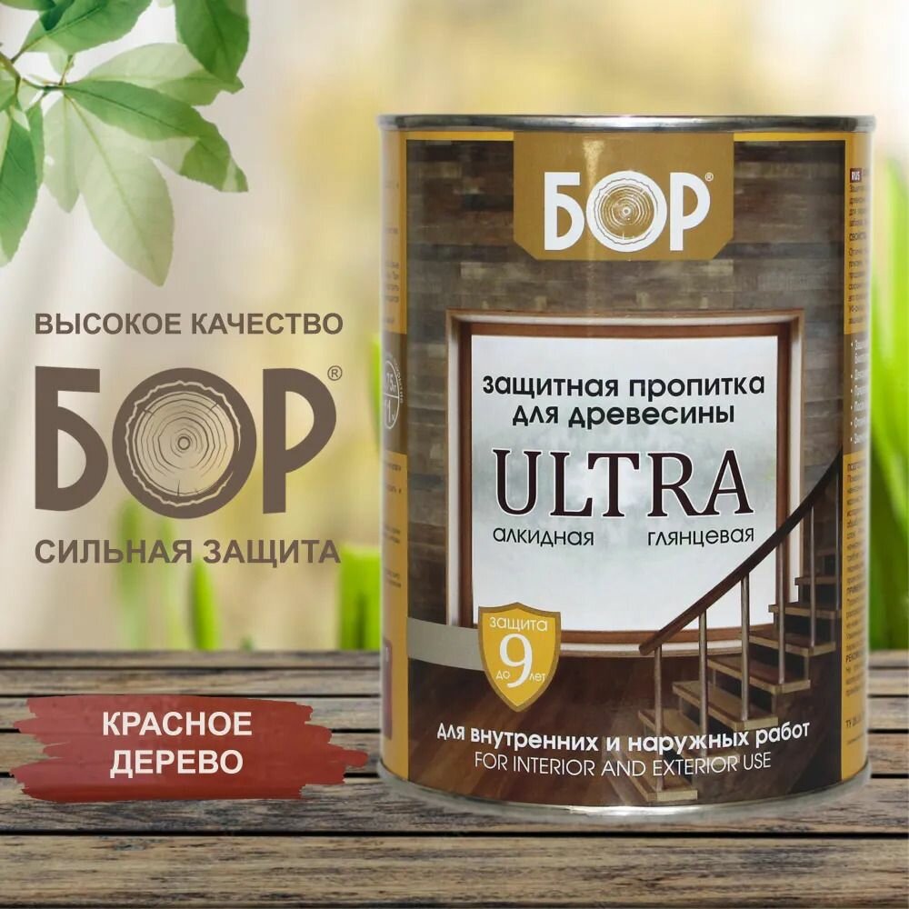 Купить Защитная пропитка для дерева БОР Ultra / Красное дерево 0,75кг