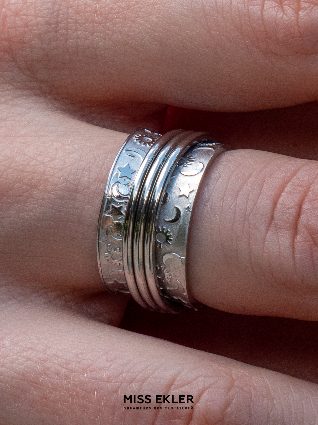Кольцо-механизм "Антистресс" Miss Ekler, ювелирная сталь, с луной и звёздами, 21 размер