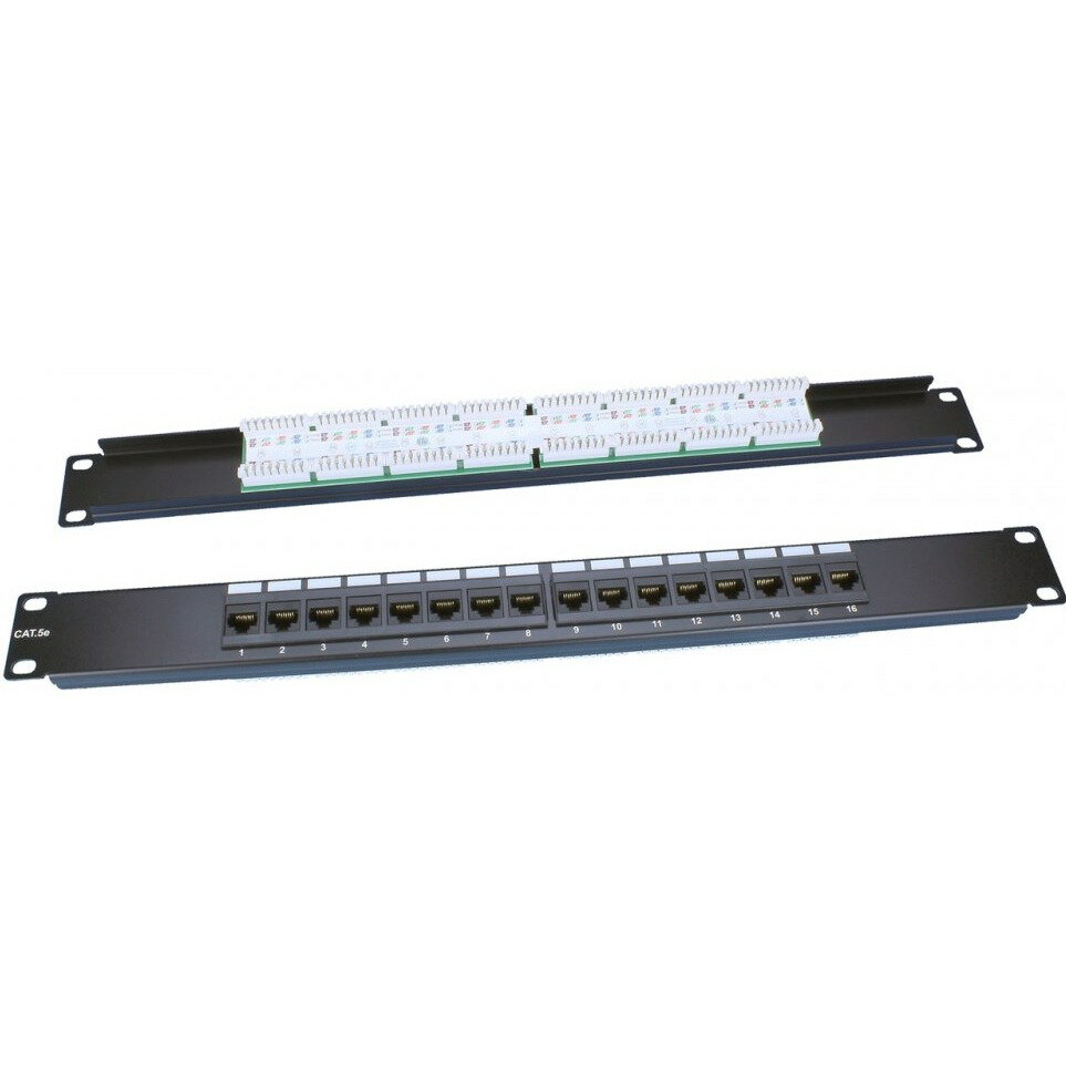 Панель Hyperline Патч-панель 19", 1U, 16 портов RJ-45, категория 5e, Dual IDC," ROHS, цвет черный