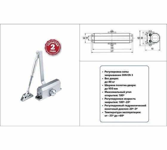 Дверной доводчик DORF 80 кг, серебро L8223_silver
