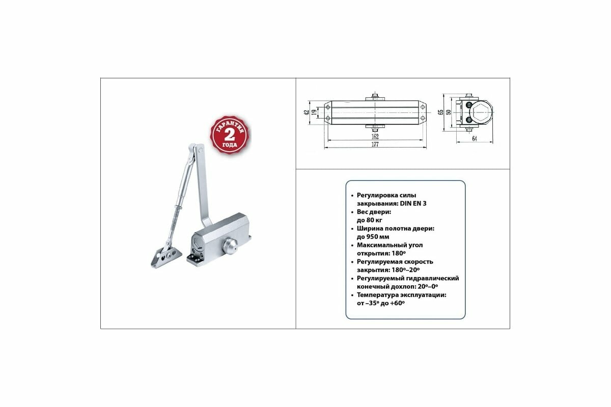 | Максимальный вес двери | 80 кг |