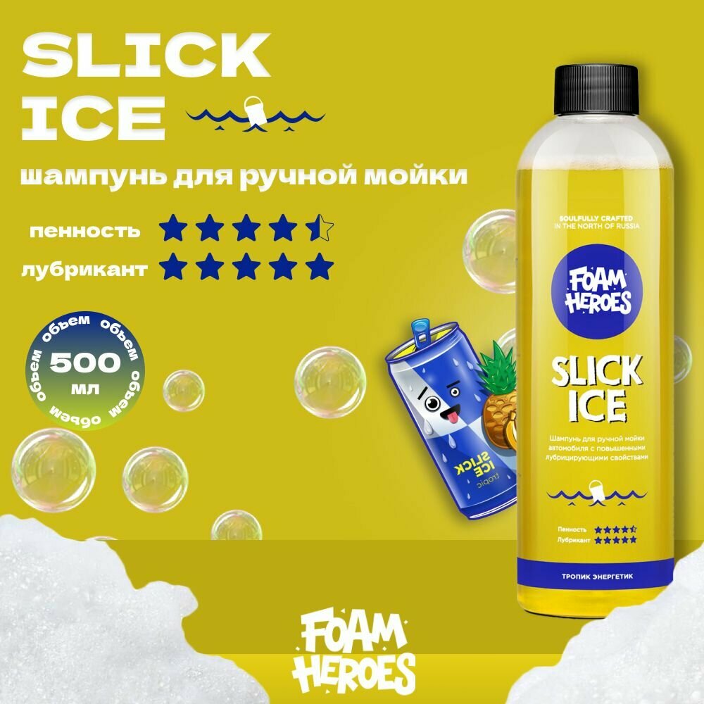 Автошампунь Foam Heroes Slick Ice Zippy 500мл, для ручной мойки автомобиля, концентрат