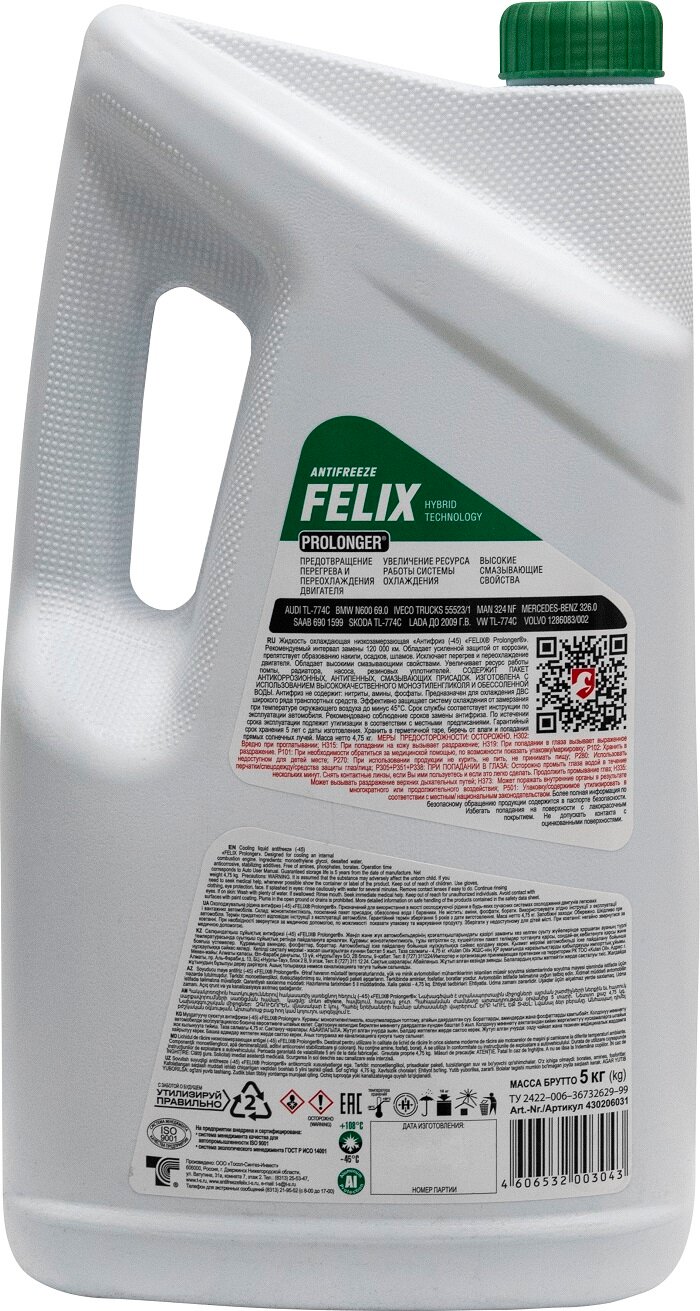 антифриз FELIX Prolonger зеленый 5кг интересное: