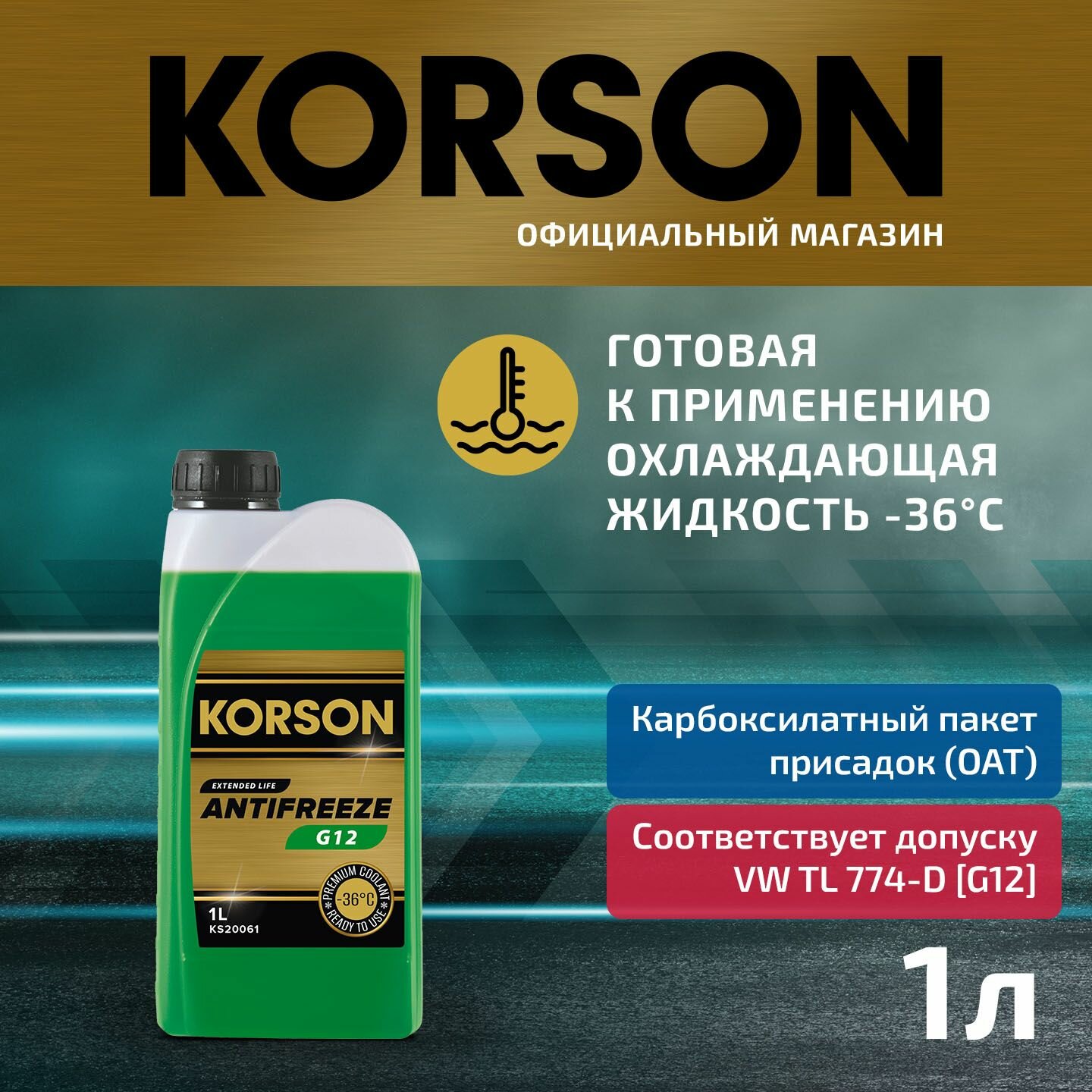 Антифриз концентрат G12 зеленый 1л KORSON KS20011