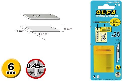 OLFA 25 шт, 6 мм, перовые лезвия для ножа OL-AK-1 (OL-KB)