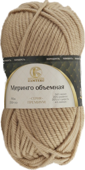 Пряжа Камтекс "Меринго объемная", цвет: 101 - Капучино, 1 шт., Меринос 20%, Полутонкая Шерсть 20%, Акрил 56%, Лайкра 4%, 150 г 90 м