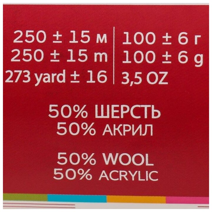 Пряжа "Подмосковная" 50% шерсть, 50% акрил 250м/100гр (378, герань)