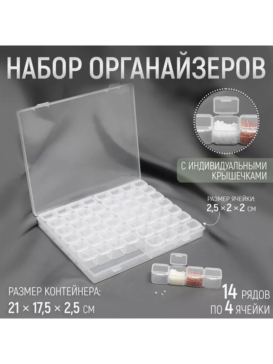 Купить Набор органайзеров, 14 рядов по 4 ячейки, 21 × 17,5 × 2,5 см, в контейнере, цвет прозрачный