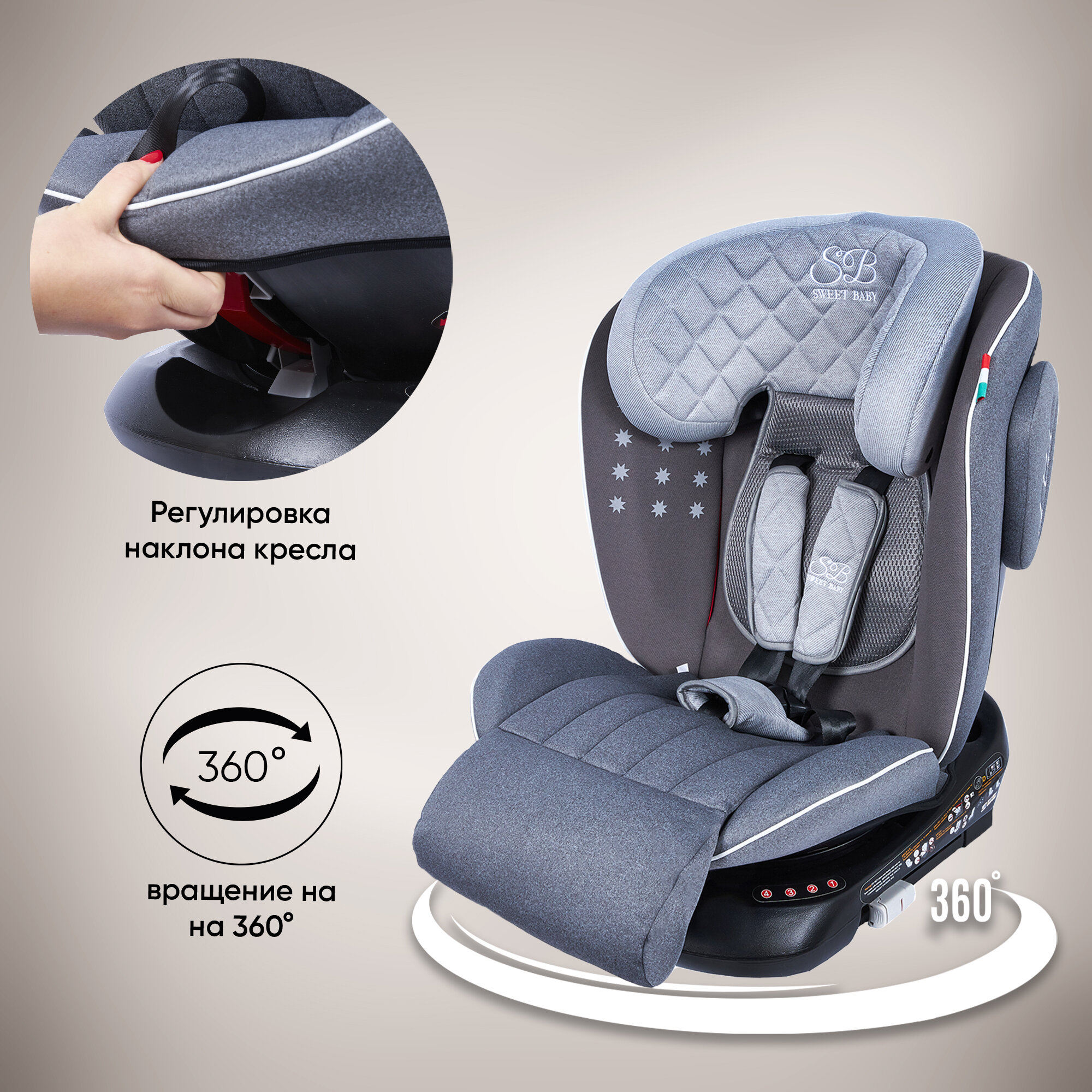 Купить Автокресло группа 0123 (0-36) Sweet Baby Fortuna 360 SPS Isofix Grey