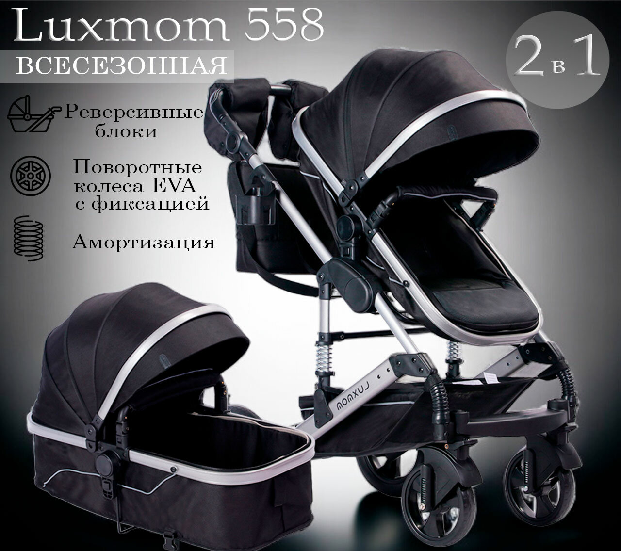 Коляска трансформер Luxmom 558 2в1 (прогулочный блок + люлька) /чёрный интересное: