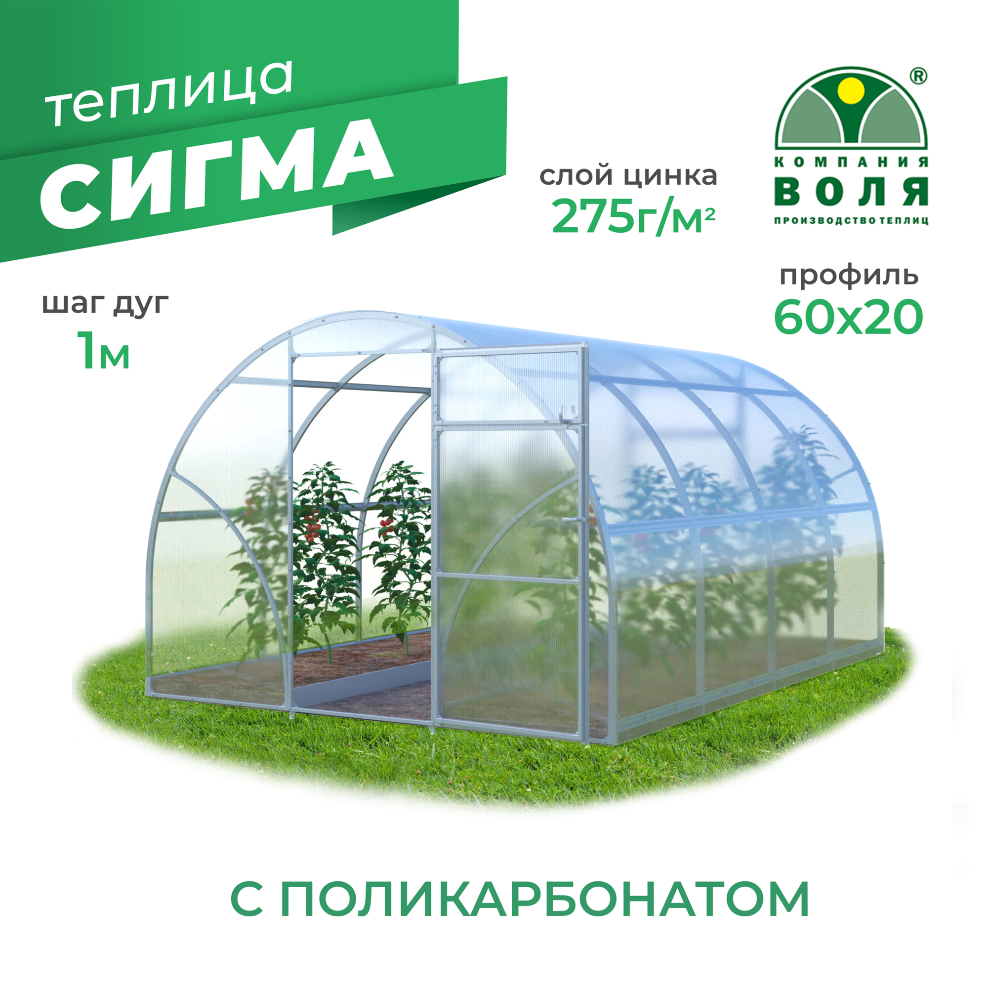 Теплица арочная (поликарбонат Стандарт 4мм в комплекте) "Сигма" 3x6м оцинкованная труба 40x20 с шагом дуг 1м