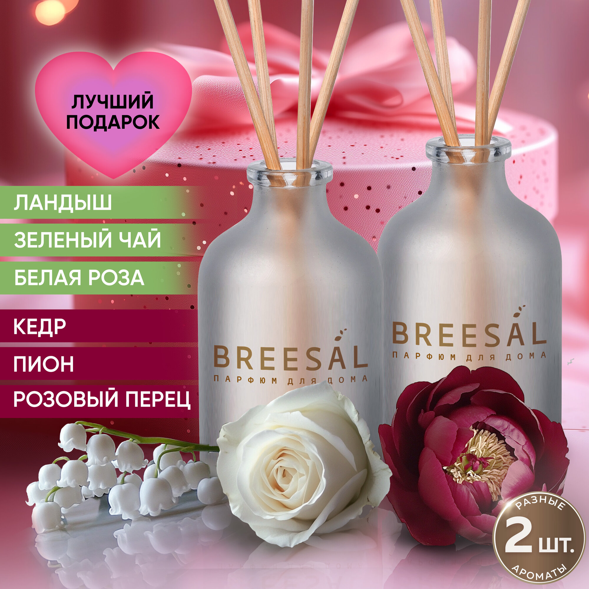 Диффузор ароматический с палочками для дома Breesal Aromа Sphere, ароматизатор набор: Трепетное прикосновение, Пленительный мираж 40 мл х 2 шт