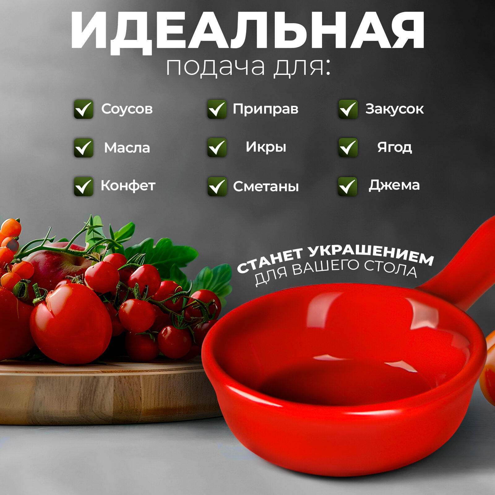 Соусник с ручкой "Классика" 10х6х2,5 см, цвет красный интересное: