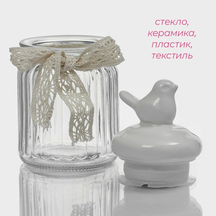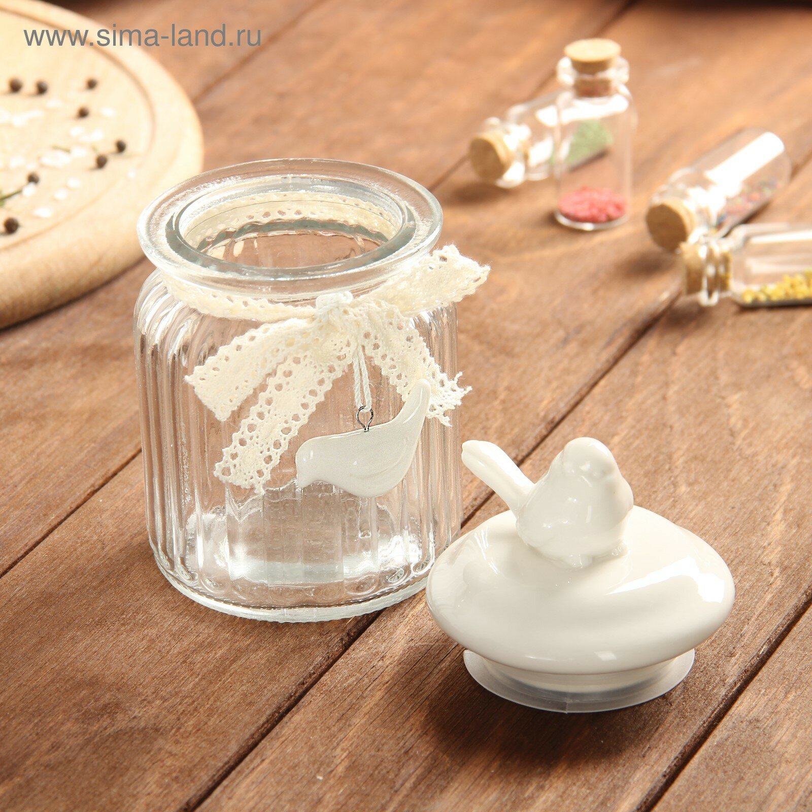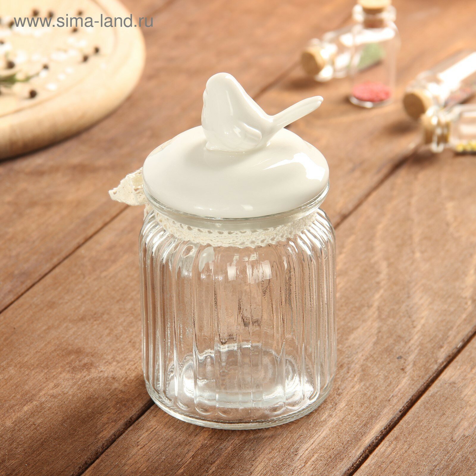 Купить Банка стеклянная для сыпучих продуктов с керамической крышкой «Птичка», 300 мл, цвет белый