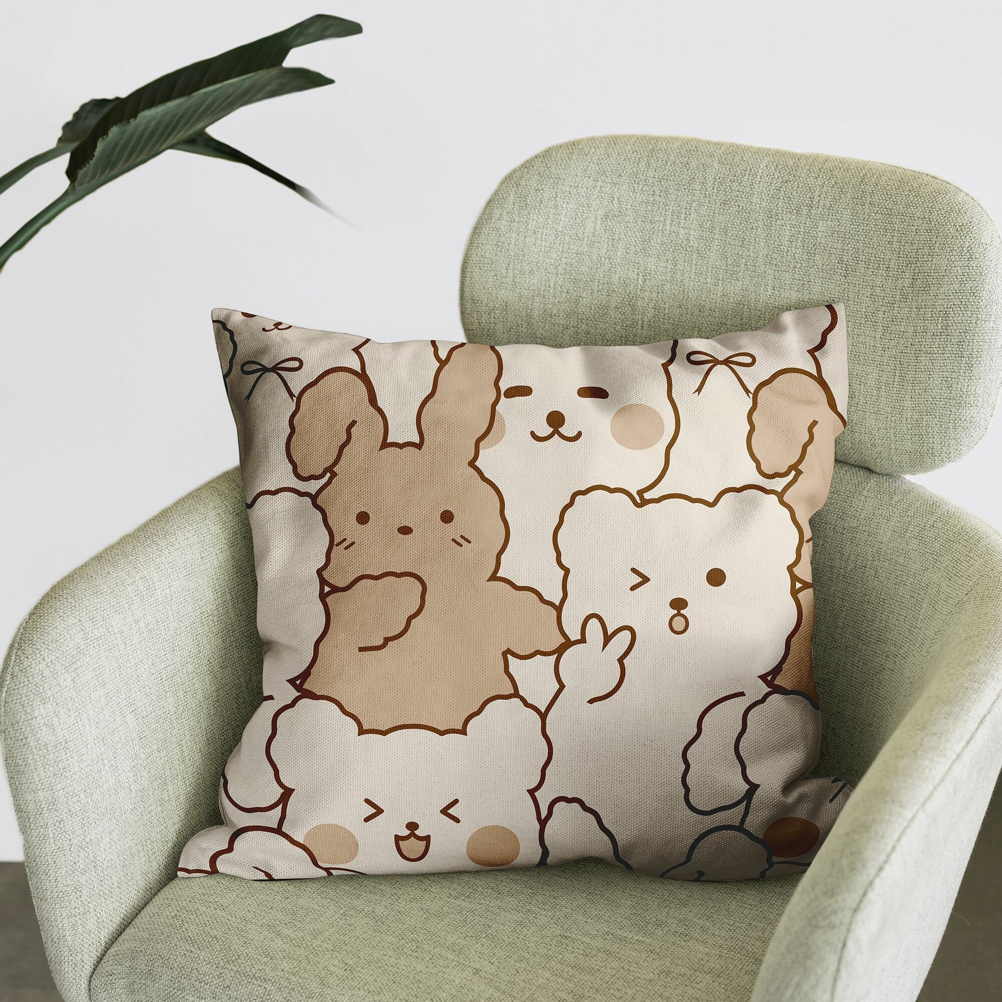 Купить Подушка 40х40 декоративная габардин / для дома / наволочки декор / в гостинную / гипоаллергенная / мягкая "Crazy Getup" рис 16692-1 Cuties