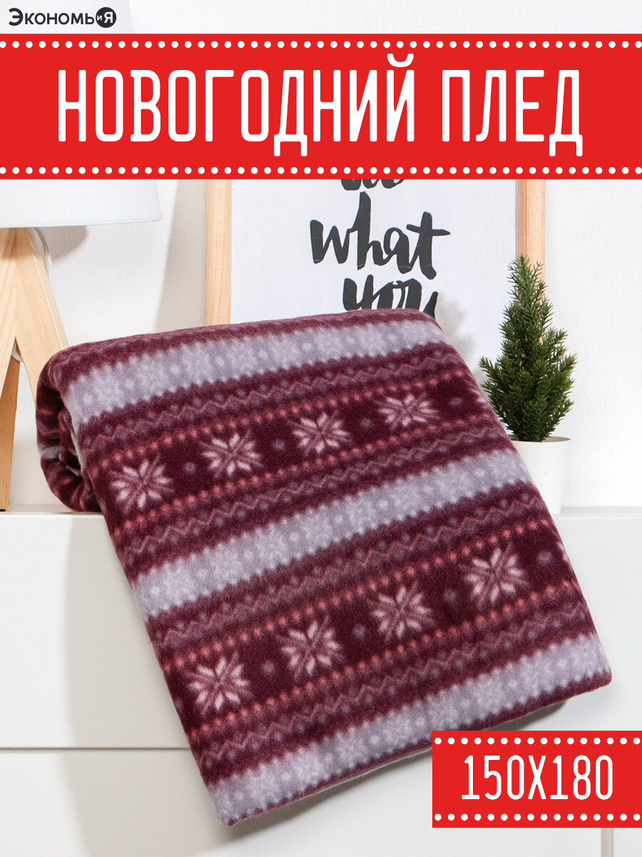Новый год. Плед Экономь и Я "Новогодний узор" 150*200см, пл.160 г/м2, 100% п/э