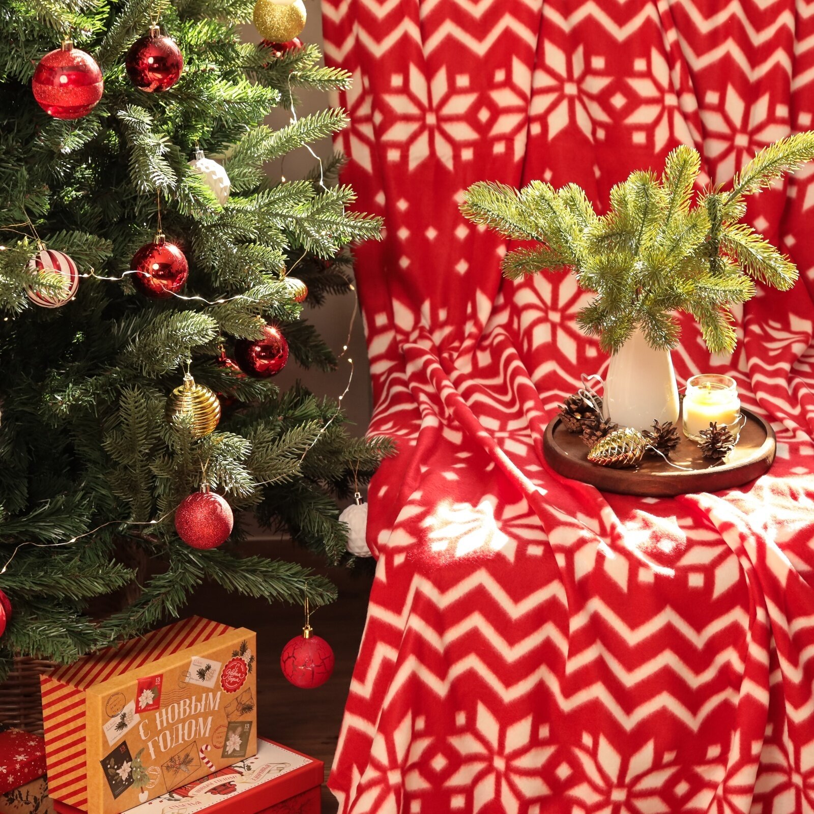 Плед Экономь и Я «Рождество» 150*180см, пл.160 г/м2, 100% п/э
