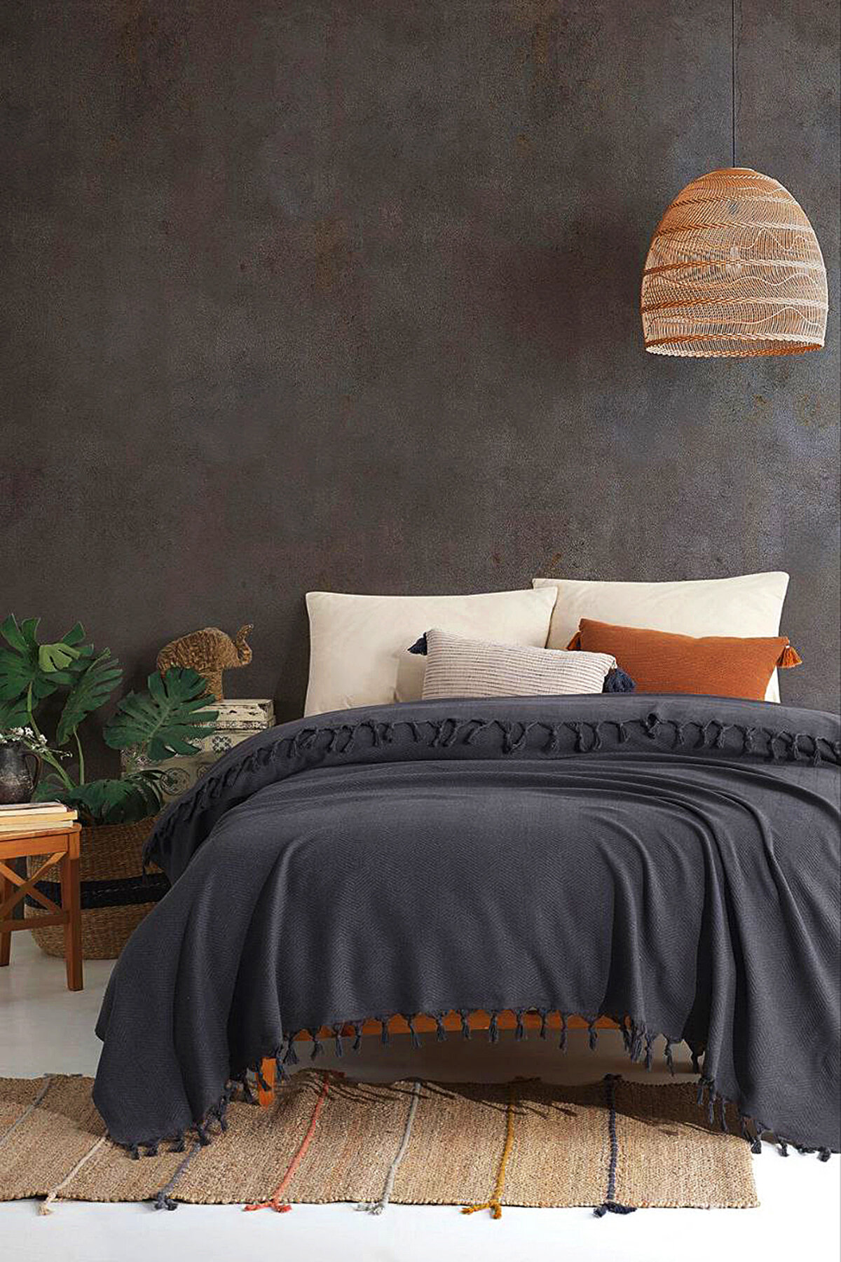 Купить Плед на кровать и диван 200х230 см 100% хлопок двухсторонний, антрацит