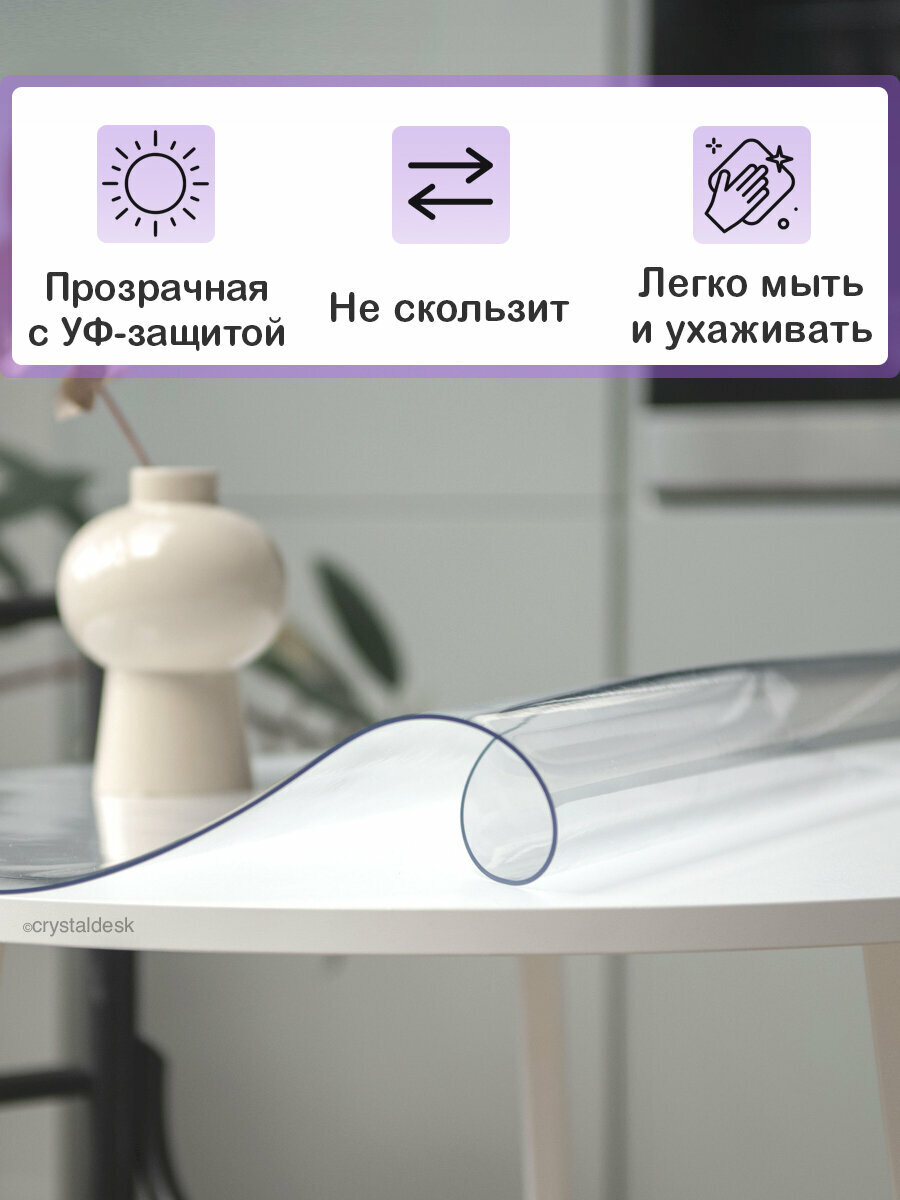 Гибкое стекло на стол, прозрачная круглая скатерть, CrystalDesk, диаметр 140 см, ПВХ, толщина 2 мм
