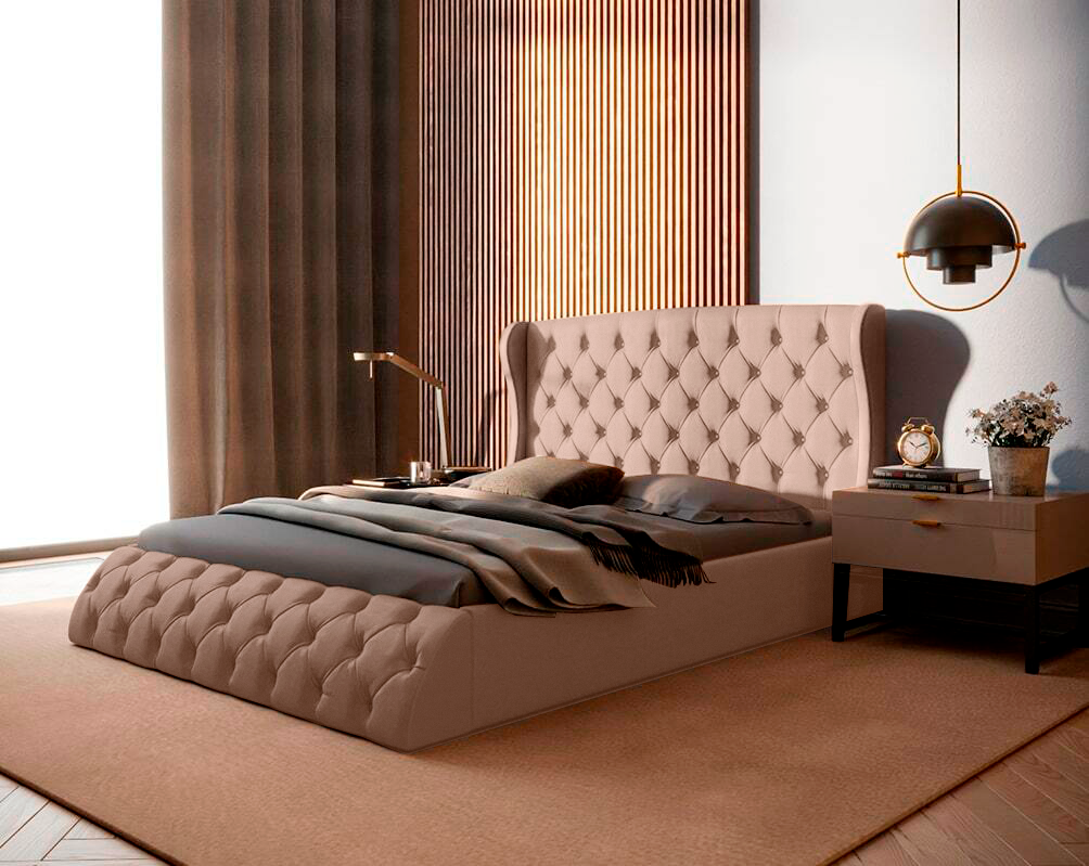 СохранитьДвуспальная кровать 180x200, Lavr, с мягким изголовьем, с ящиком, велюр, бежевый интересное: