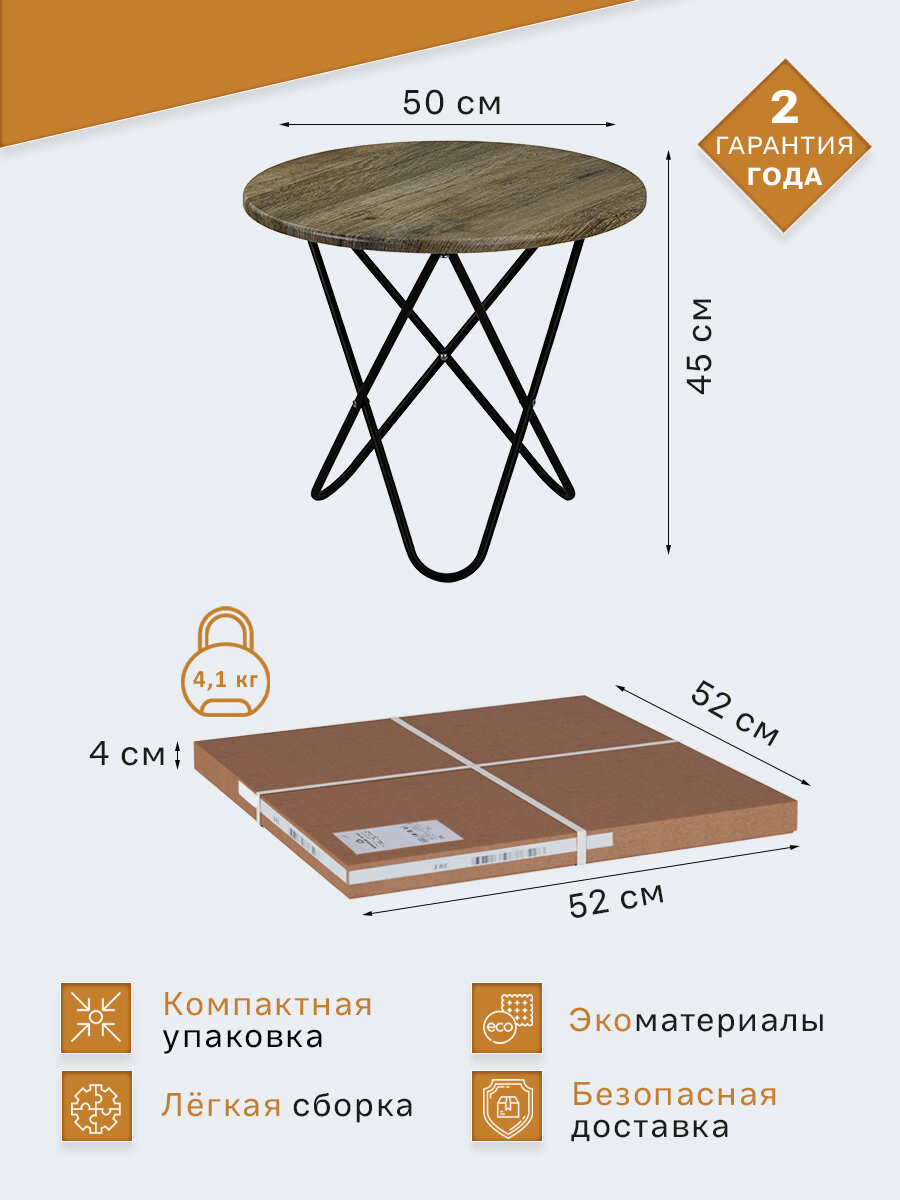 Журнальный стол Мебелик BeautyStyle 20 дуб крымский состаренный/черный (П0006261)