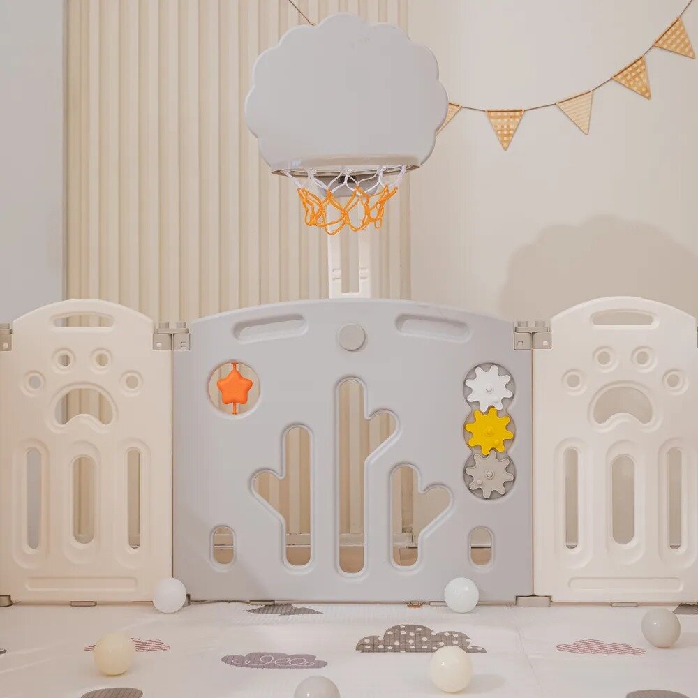 Манеж UNIX Kids DeLuxe Grey,180 x 200 см, с баскетбольным кольцом и ковриком, из безопасных материалов интересное: