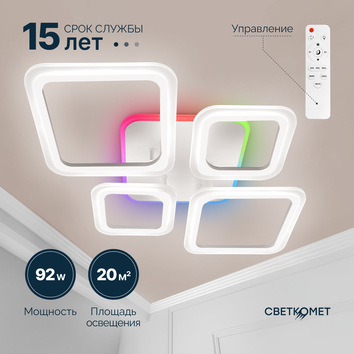 Люстра светодиодная с пультом RGB подсветка Светкомет белая матовая 92 Вт интересное: