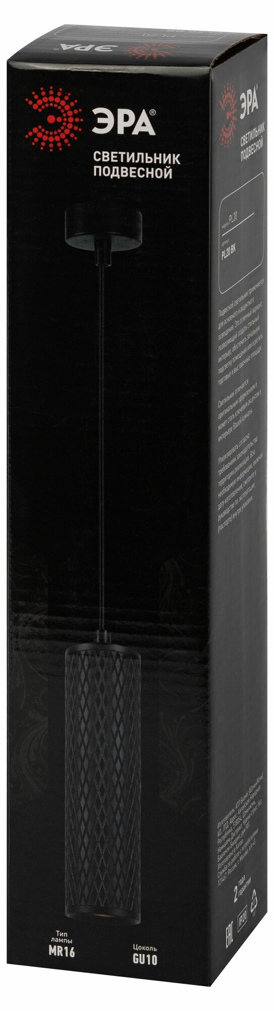 Светильник подвесной (подвес) ЭРА PL20 BK MR16 GU10 потолочный цилиндр черный интересное: