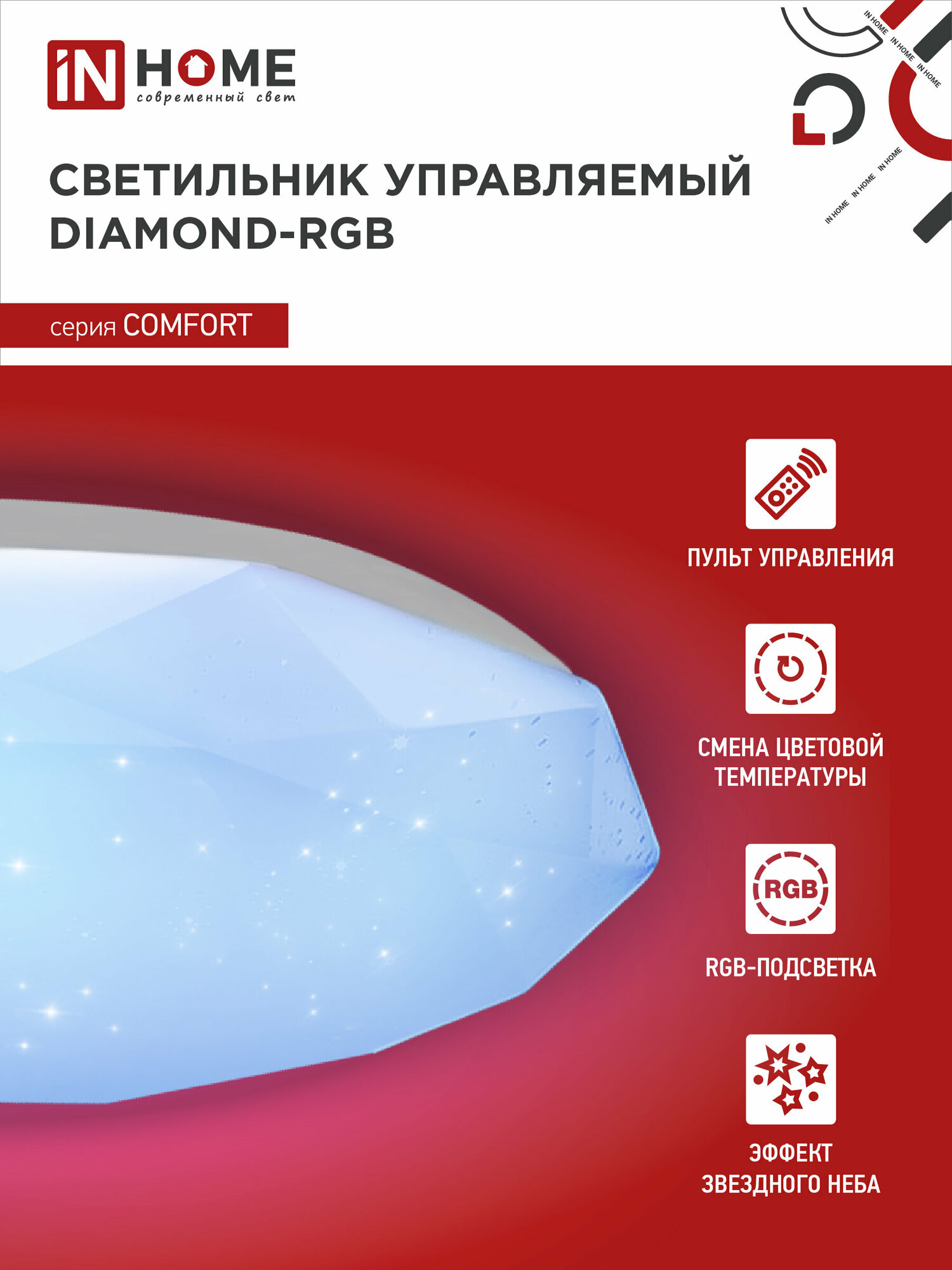 Светильник светодиодный IN Home COMFORT DIAMOND-RGB 55Вт 230В 3000-6500К 4400лм 385х75мм с пультом ДУ 4690612044576