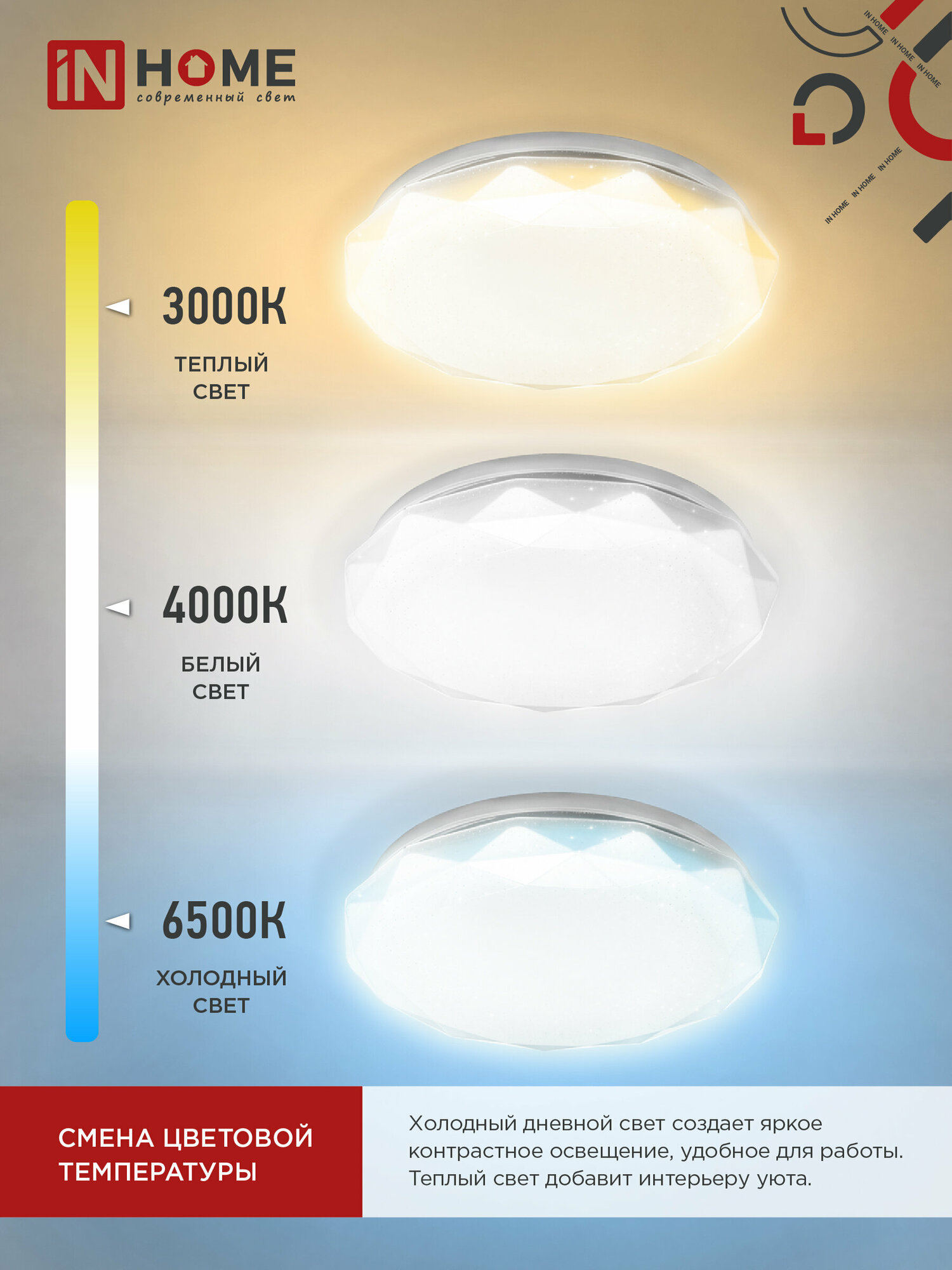 Светильник светодиодный IN Home ELEGANT SANSA-120W 120Вт 230В 3000-4000-6500К 8400лм 650х650х130мм с пультом ДУ 4690612035383