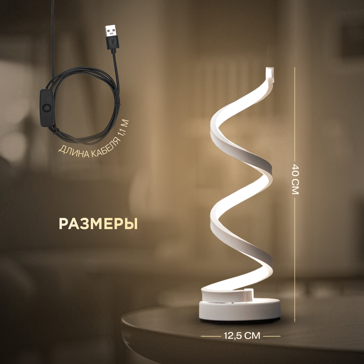Светильник настольный декоративный Спираль LED REXANT USB