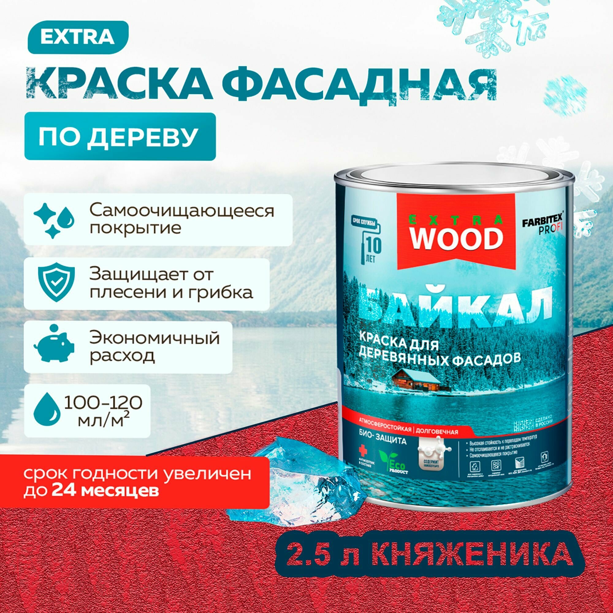 Краска Farbitex Profi Wood Extra Байкал для деревянных фасадов и интерьеров, сибирский кедр, 2,5 л