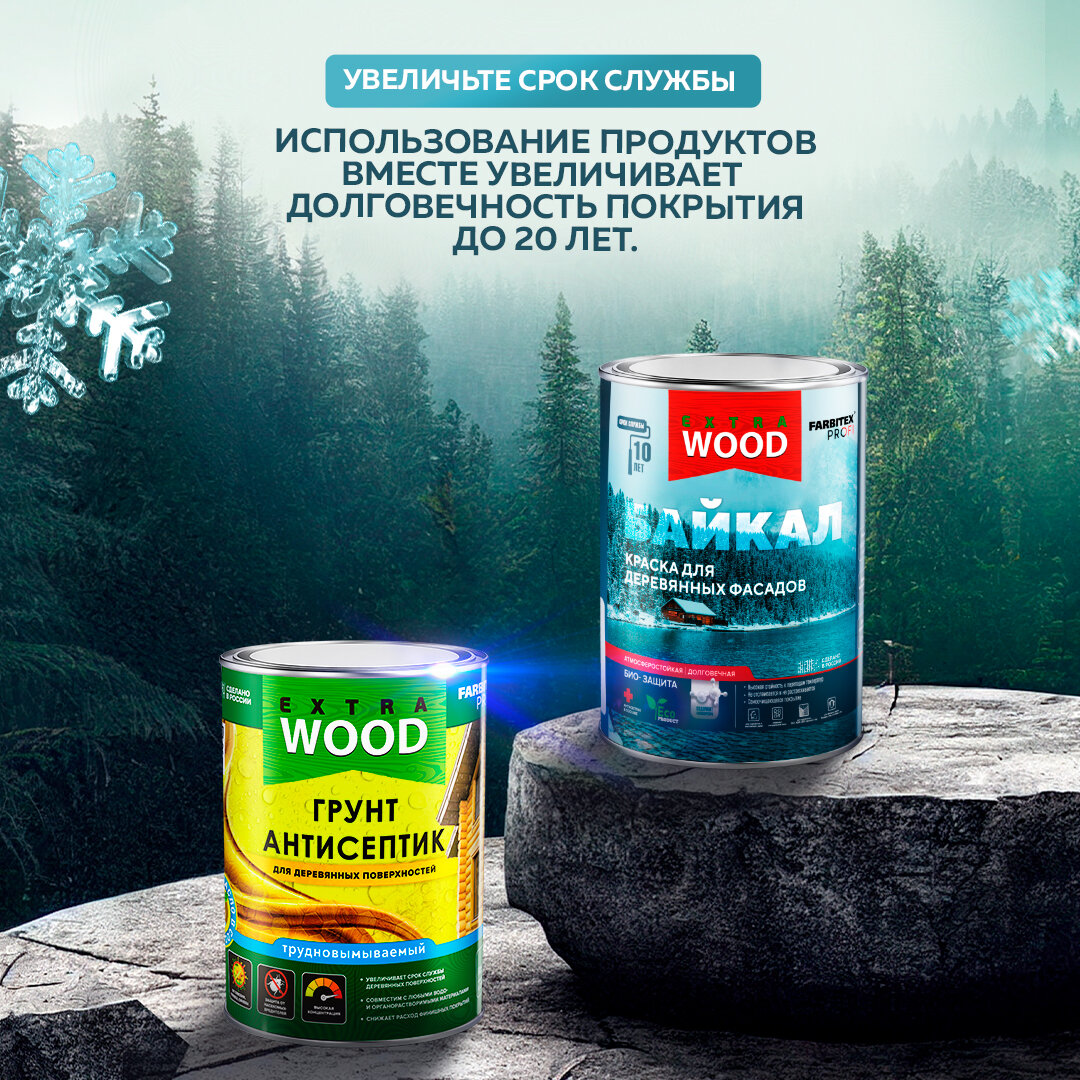 Краска Farbitex Profi Wood Extra Байкал для деревянных фасадов и интерьеров, полярная дымка, 0,75 л